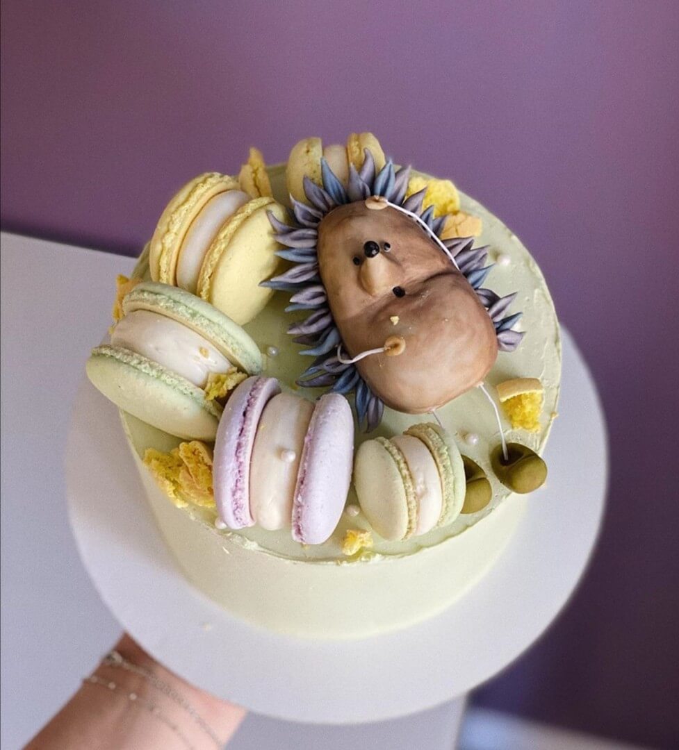 Очаровательный сладкий ежик на полянке из макарунов - что может быть аппетитнее для маленького сладкоежки?