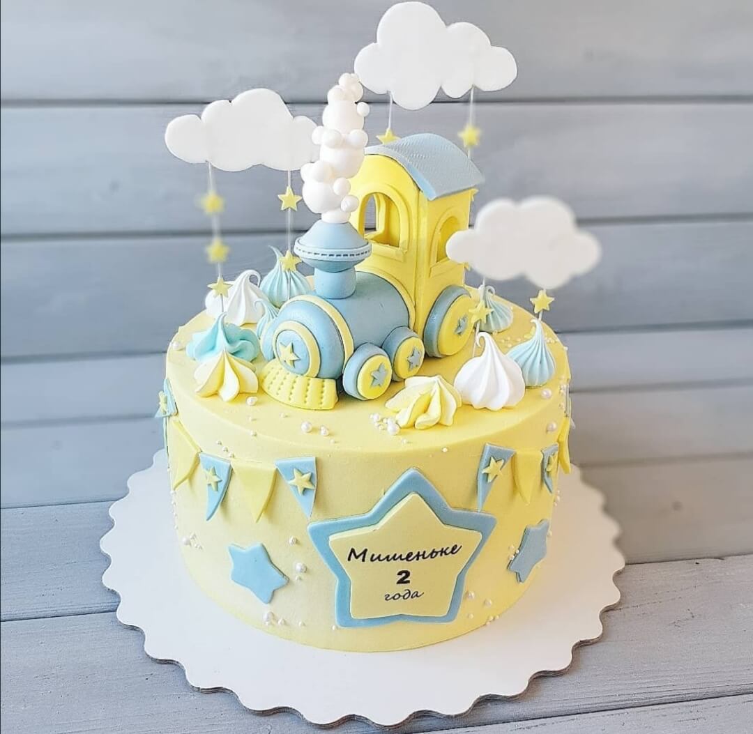 Сказочный нежный паровозик путешествует по облакам, чтобы однажды найти именинника и обязательно вкусно поздравить его с днем рождения!