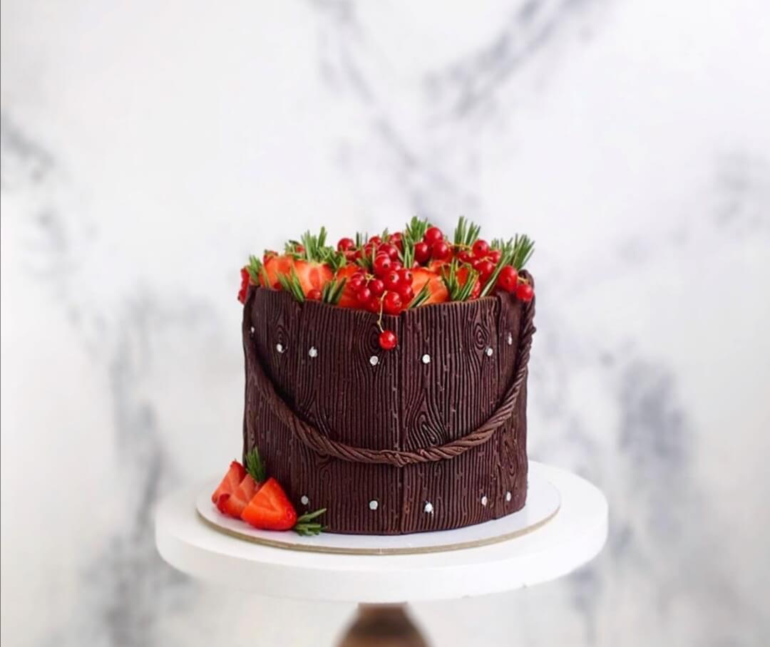 Очаровательное деревенское лукошко с урожаем свежих ягод, скрывающее за собой нежнейший и вкусный торт!