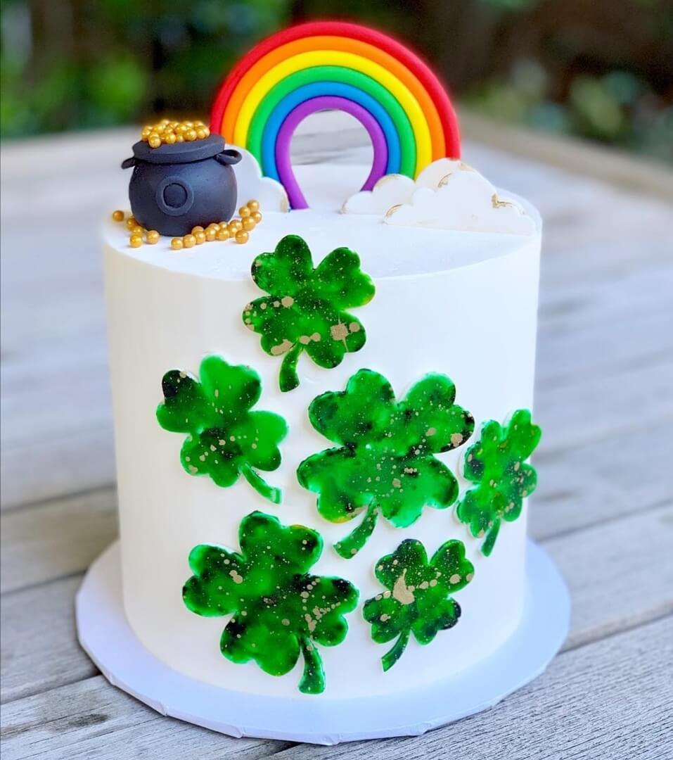 Тематический тортик на день святого Патрика - четырехлистник и горшочек с золотом (а маленького лепрекона вы должны найти сами)