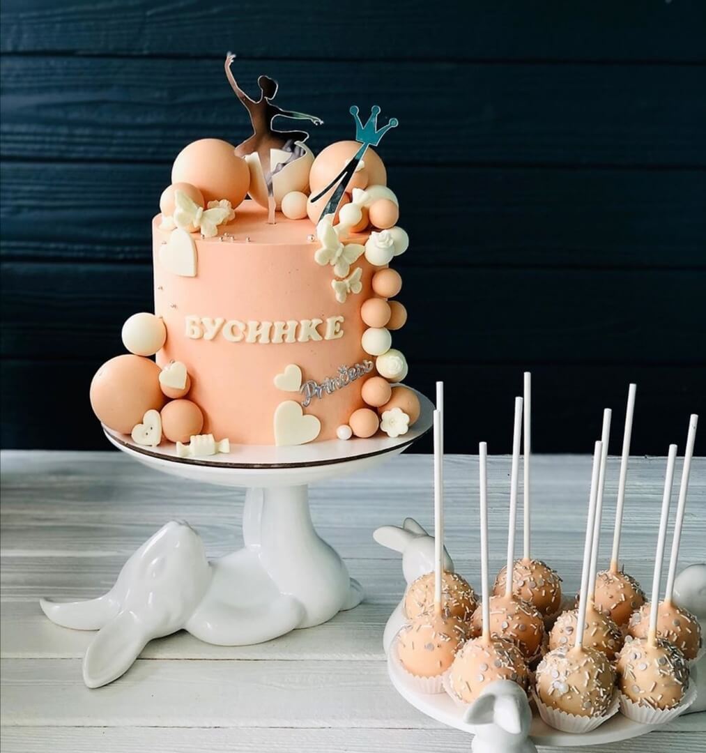 Теплый персиковый декор тортика просто излучает любовь и нежность! Самые вкусные пожелания с самым сладким тортиком для вашей принцессы!
