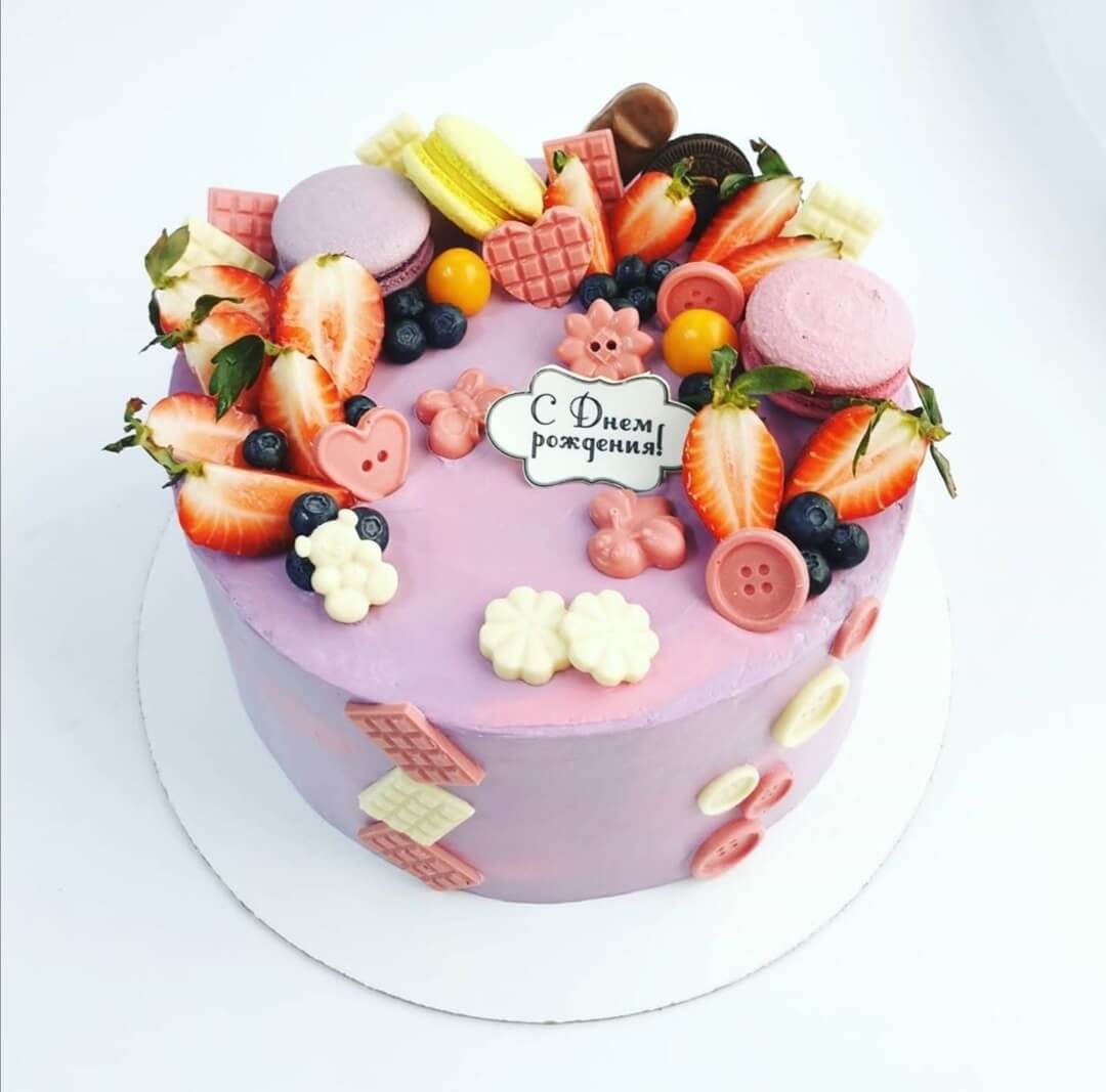 Нежный лавандовый цвет и спелые ягоды обязательно понравятся имениннице!