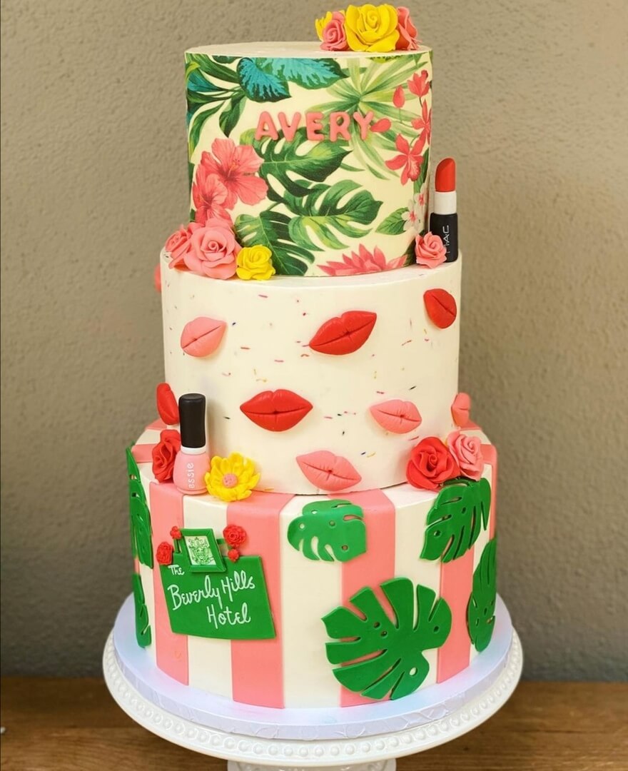 Яркий тортик, оформленный в летнем стиле для красавицы, модницы и именинницы!