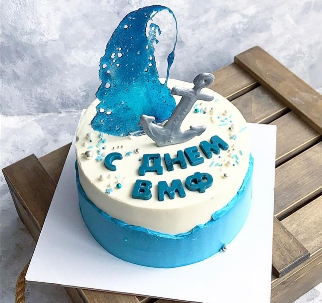 Тортик, оформленный в морской стилистике, для празднования дня военно-морского флота